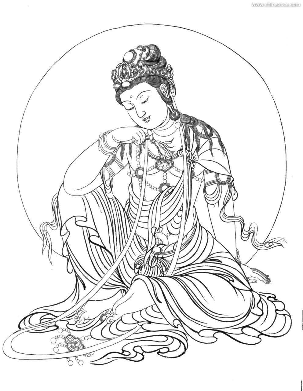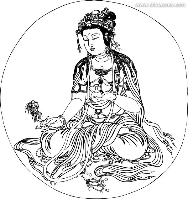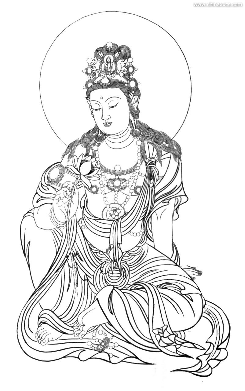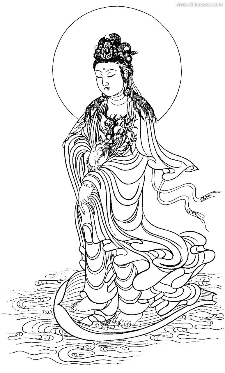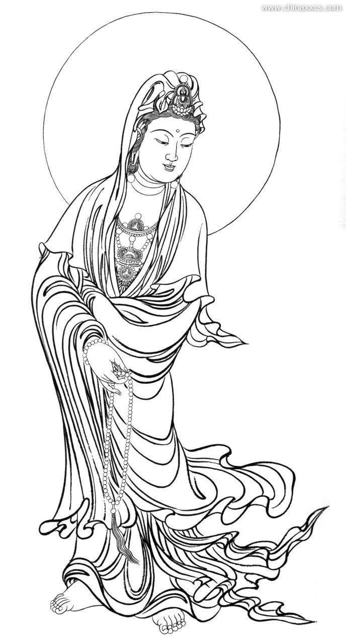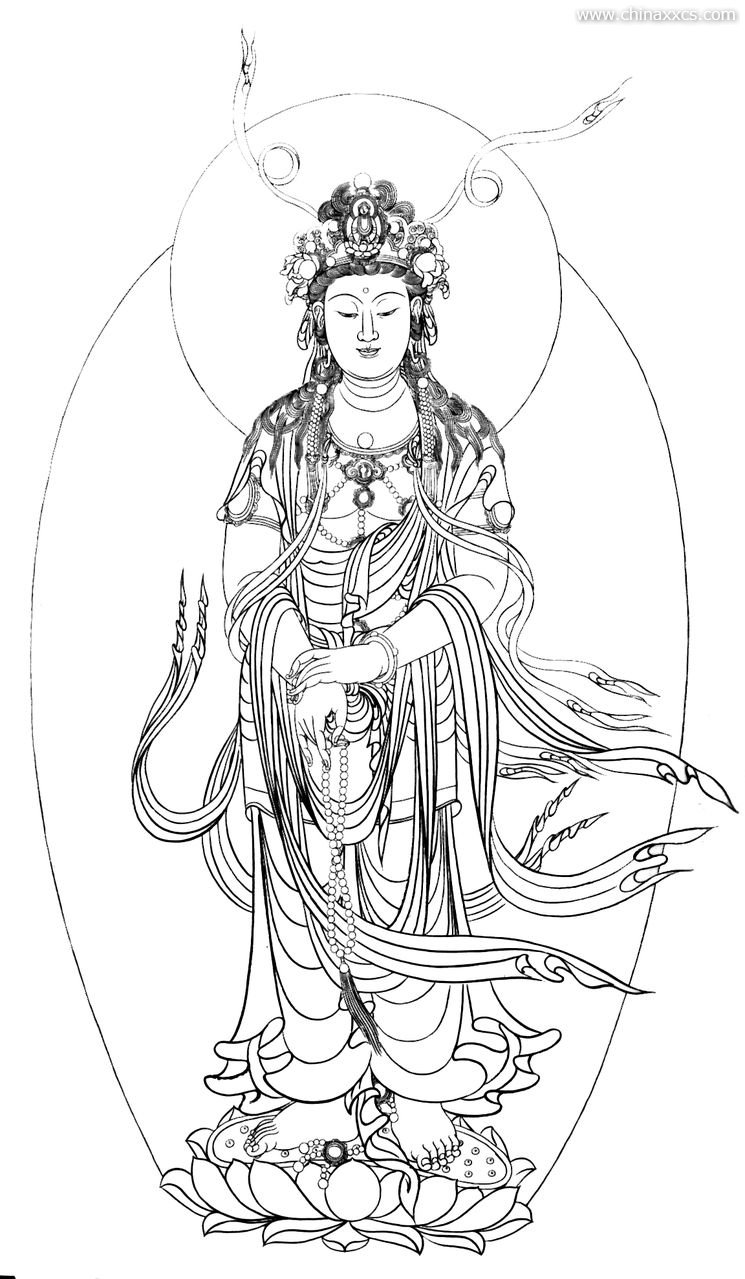 一组精美的白描观世音菩萨圣像