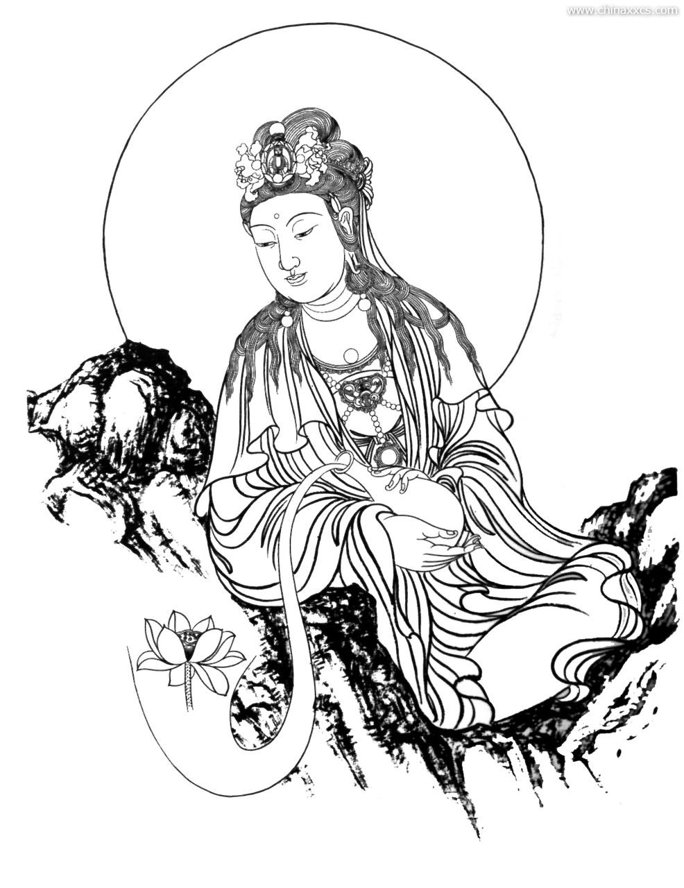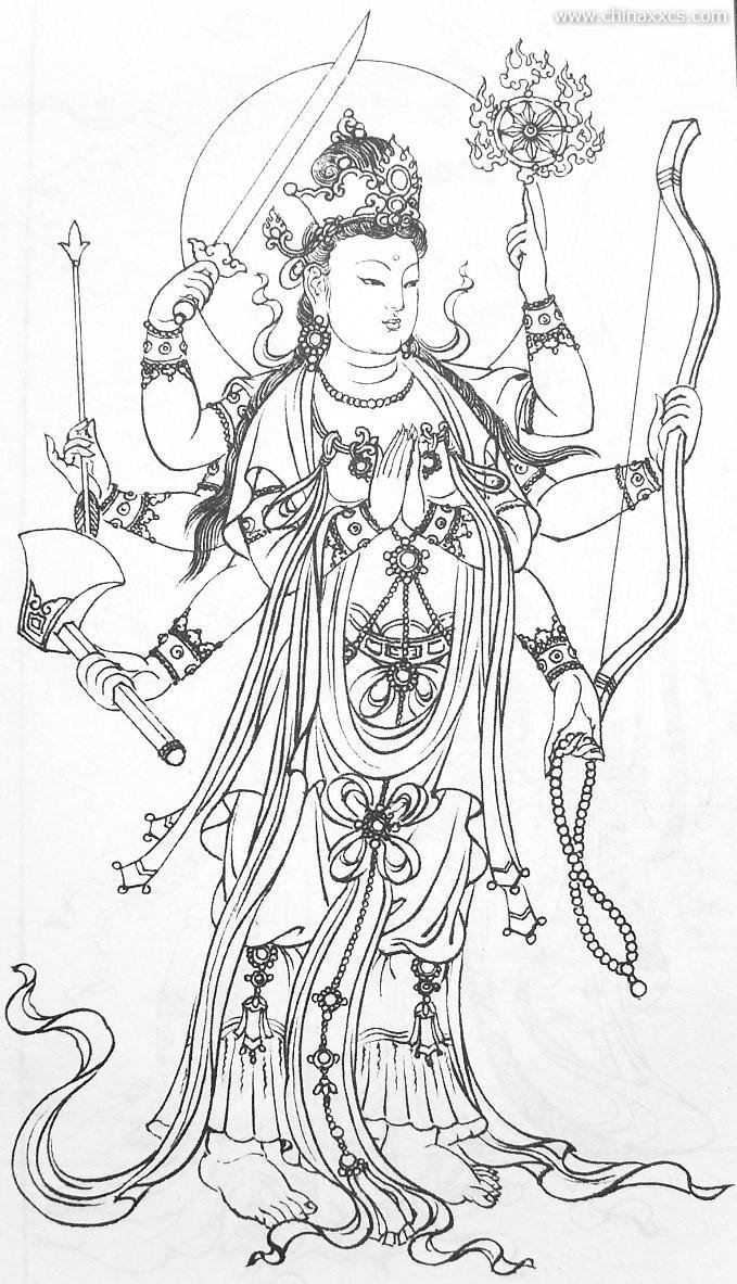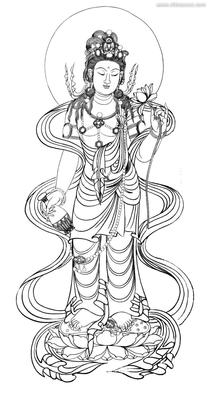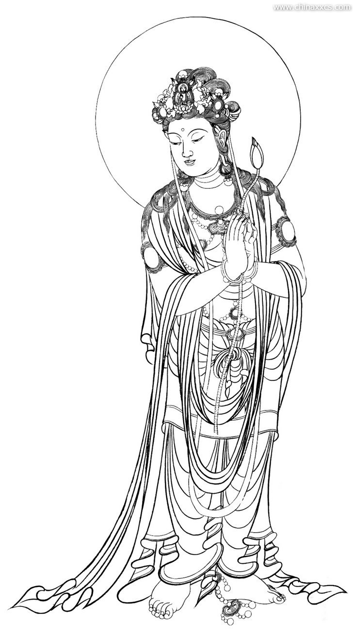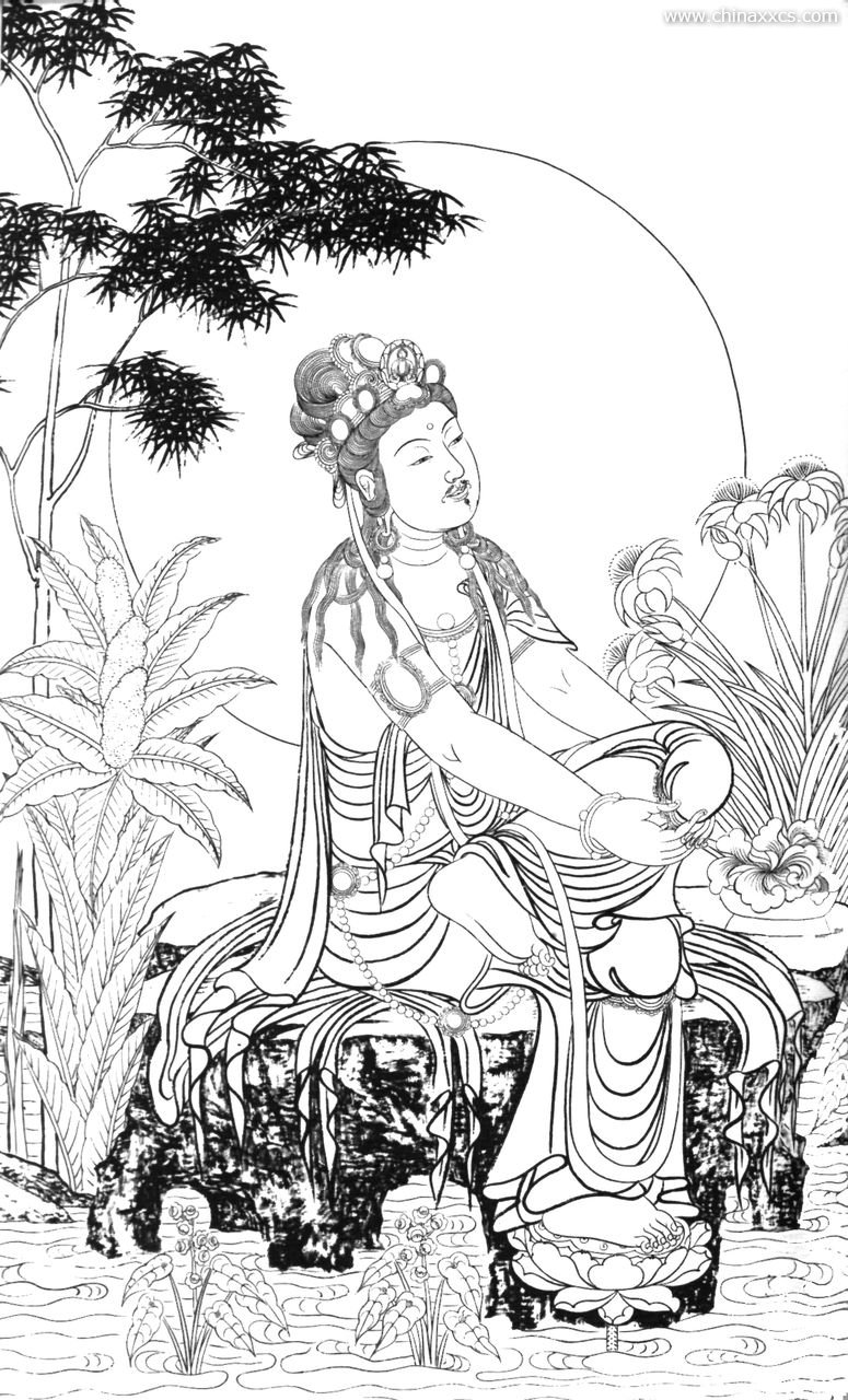 一组精美的白描观世音菩萨圣像