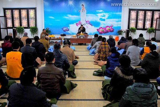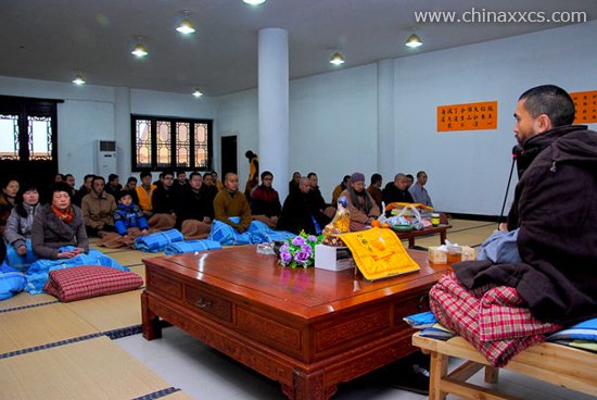 长沙的冬天气温低而且潮湿,让人觉得分外寒冷, 可是,上午9点1刻,尊客寮已经来了60多人,这时,法师开始为大家开示。整个洗心禅寺的尊客寮,法师和信众们的心中却洋溢着春天般的温暖。只因那颗对佛法希求的心得到虹鉴法师的慈悲灌溉,只因法师那深入浅出的开示,让人心中法喜充盈,只因专注听法师讲授,两个小时竟然仿若一霎那,当斋堂的板声响起时,大家才知道午斋时间到了。