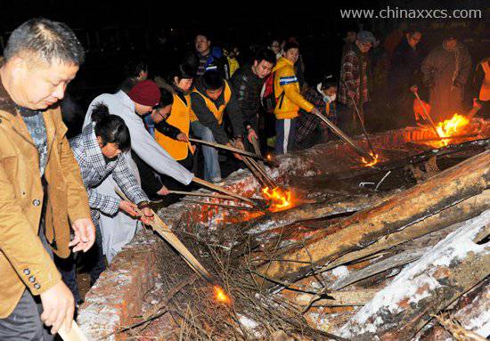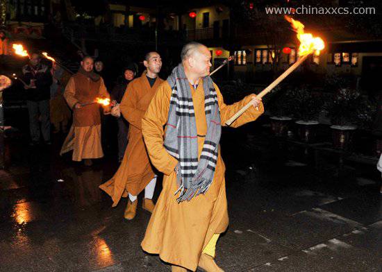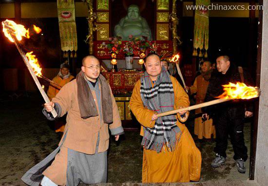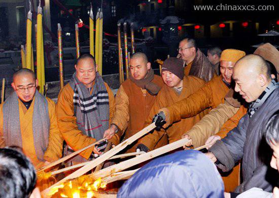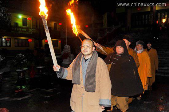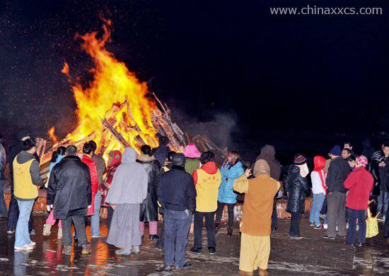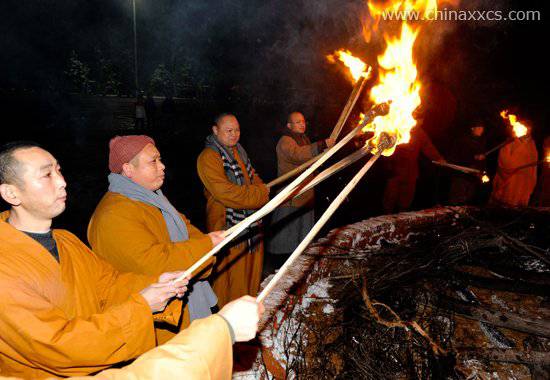 师父们点燃篝火