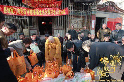 为了发扬佛教“无缘大慈、同体大悲”的济世精神,厦门观音寺慈善基金会申请成立刚刚获批,就向厦门翔安区新店镇东园村650位老人送去米、面、油、调料等价值8万多元物资,帮助他们解决了实际困难,送去佛教界人士对老人们的爱护和关怀,新春的温暖和祝福。