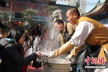 2011年1月11日,是中国的传统节日腊八节。西安的大慈恩寺、大兴善寺、广仁寺等各大寺院均面向民众施舍“腊八粥”,其中大兴善寺外从凌晨5时起就有大量信众排队等候,蜿蜒的队伍中“80后”、“90后”的身影随处可见。