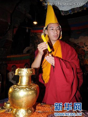中国佛教协会副会长、第十一世班禅额尔德尼·确吉杰布掣签。