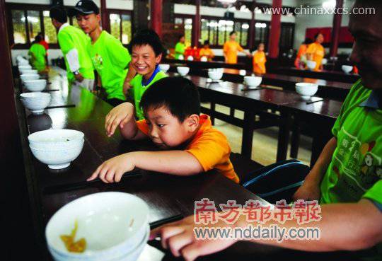 南方都市报组织留守儿童和他们的父母近百人来到罗湖区仙湖植物园弘法寺体验生活,父母和孩子们一起打坐分享,诵读《弟子规》(详见昨日南都A 05版)。前晚,弘法寺专门安排客房给这些特殊客人留宿,10余名义工全程照料。